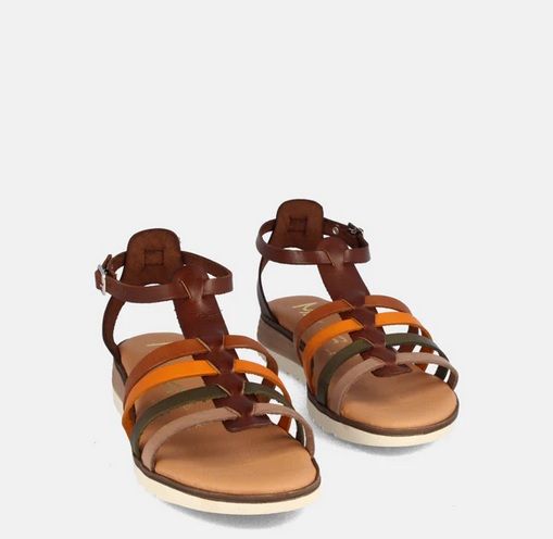Su estructura es está combinada con tiras en color cuero, naranja, verder militar y taupe. La cuña tiene 2cm de altura por la parte trasera y 1cm por la parte delantera. Su cierre es mediante hebilla regulable. El piso es de TR en color madera. Plantilla acolchada de 5mm. Muy cómodas y flexibles. Ideales para combinar con tus outfits más veraniegos.
