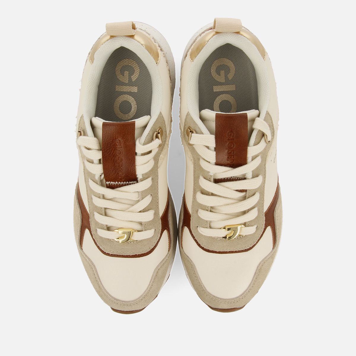 Sneakers para mujer de la colección de GIOSEPPO modelo Copake en color beige con pelo efecto borreguito y acentos metalizados. Cuentan con plantilla anatómica extraíble para garantizar el confort. Los contrastes de colores y tejidos aportan autenticidad al diseño. La hilatura de los tejidos utilizados en la fabricación del forro de este modelo tiene el sello de garantía certificada Global Recycle Standard (GRS).