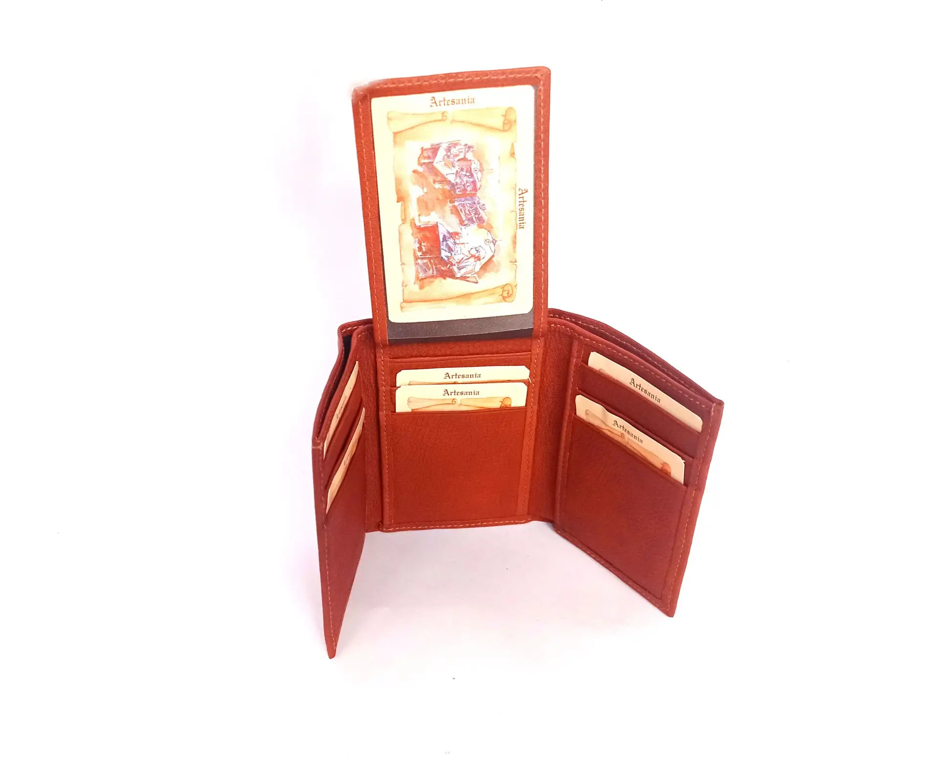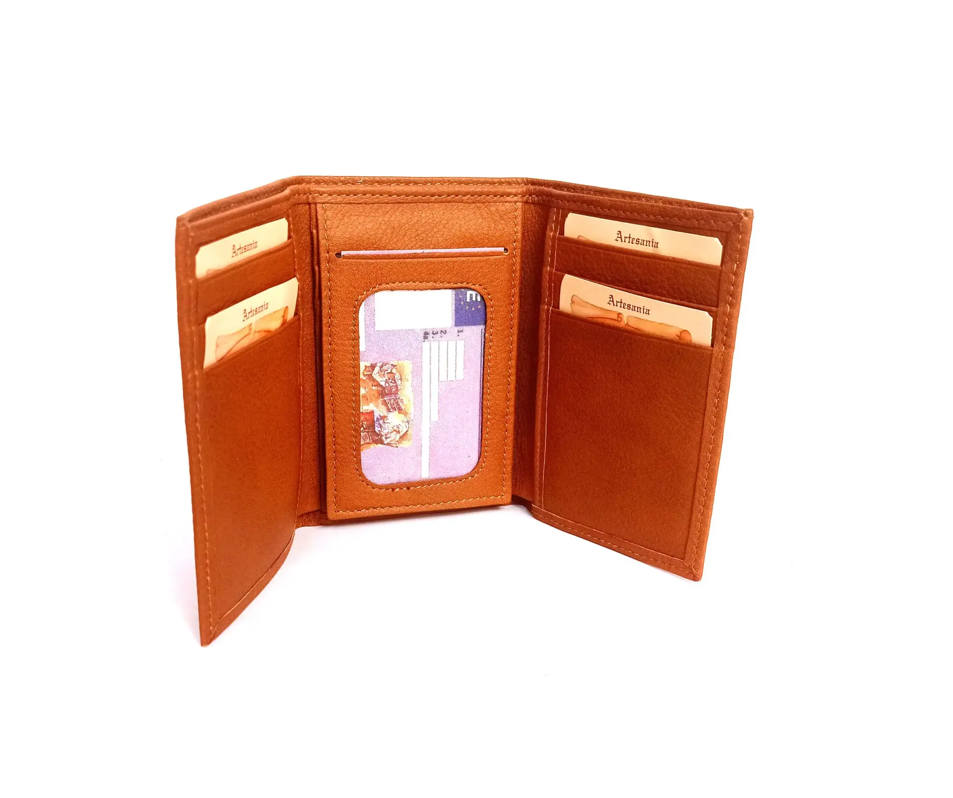 Tarjetero con billetero de la colección de Nilo. Tarjetero con 9 ranuras para tarjetas, 2 fundas para documentos y billetero. Piel vacuno natural, suave e hidratada.