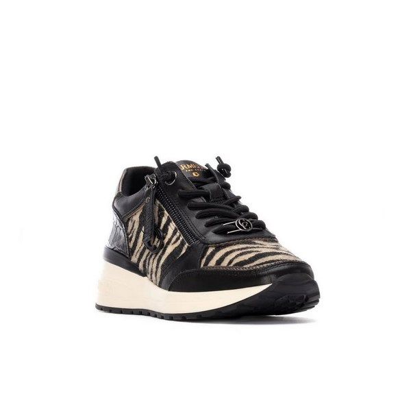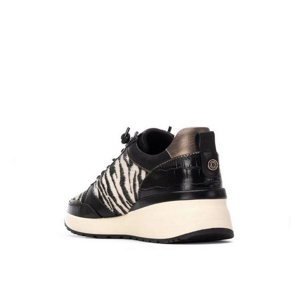 Zapatilla de mujer de la marca Carmela. Fabricada en piel de alta calidad. Cierre mediante cremallera lateral y cordones ajustables. Detalles con bonito grabado en coco y efecto metalizado. Tirador trasero para facilitar la puesta. Suela de goma antideslizante con planta acolchada.