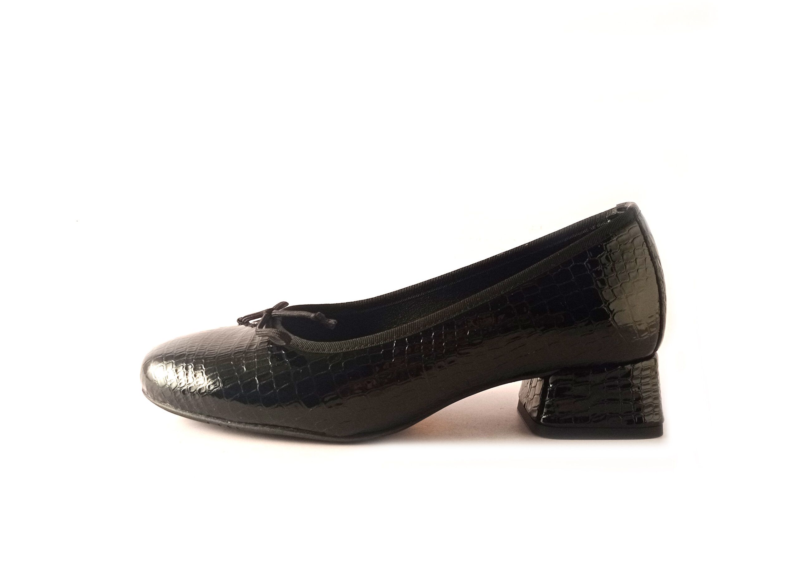 Zapato bailarina D’Chicas de tacón bajo en piel grabada color negro