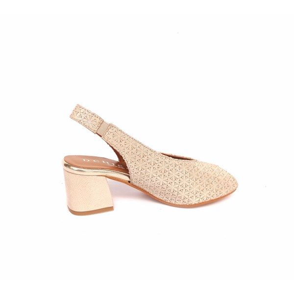Zapatos de salón destalonados con tacón medio D’Chicas oro champán de la colección primavera/verano de la marca.