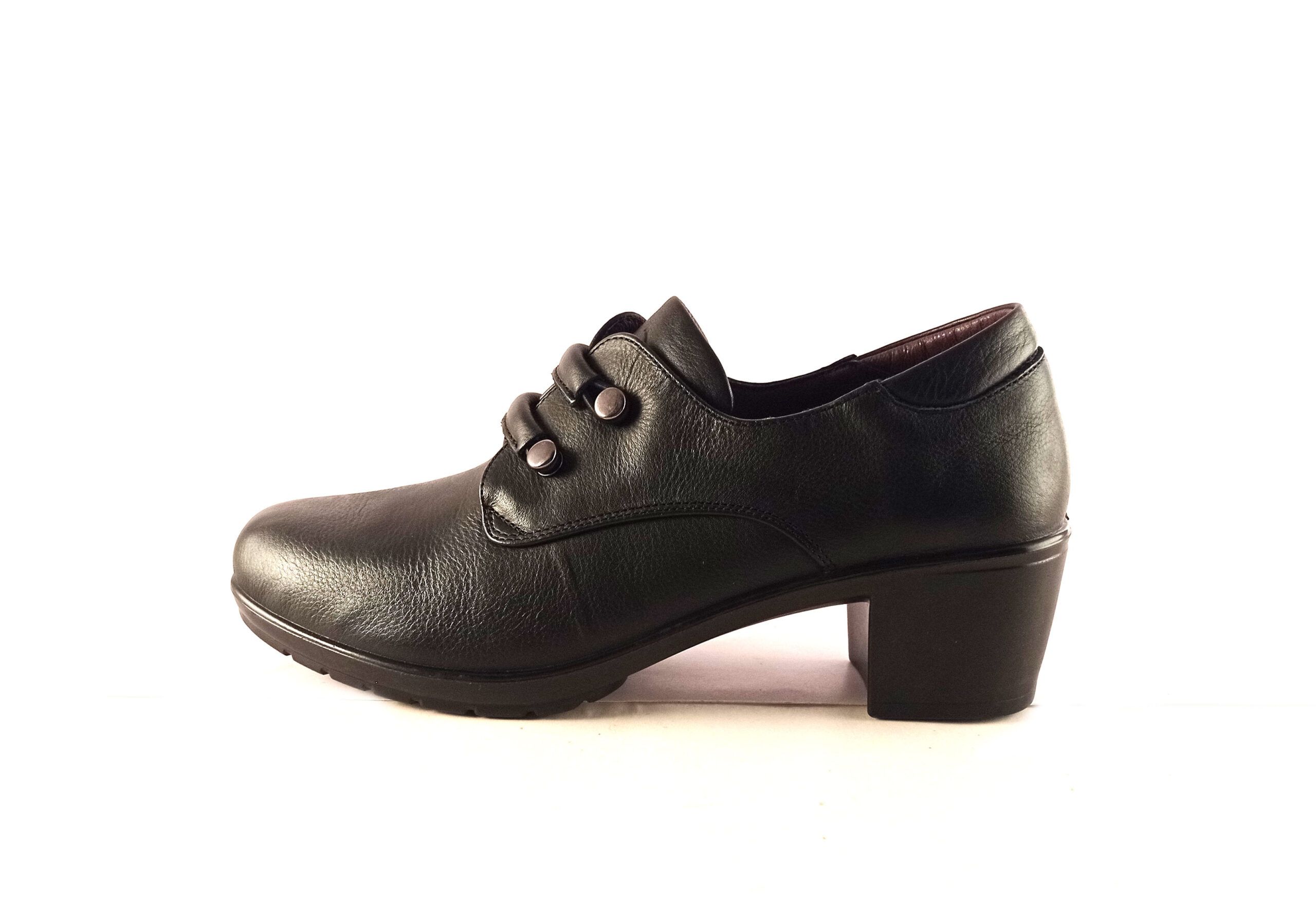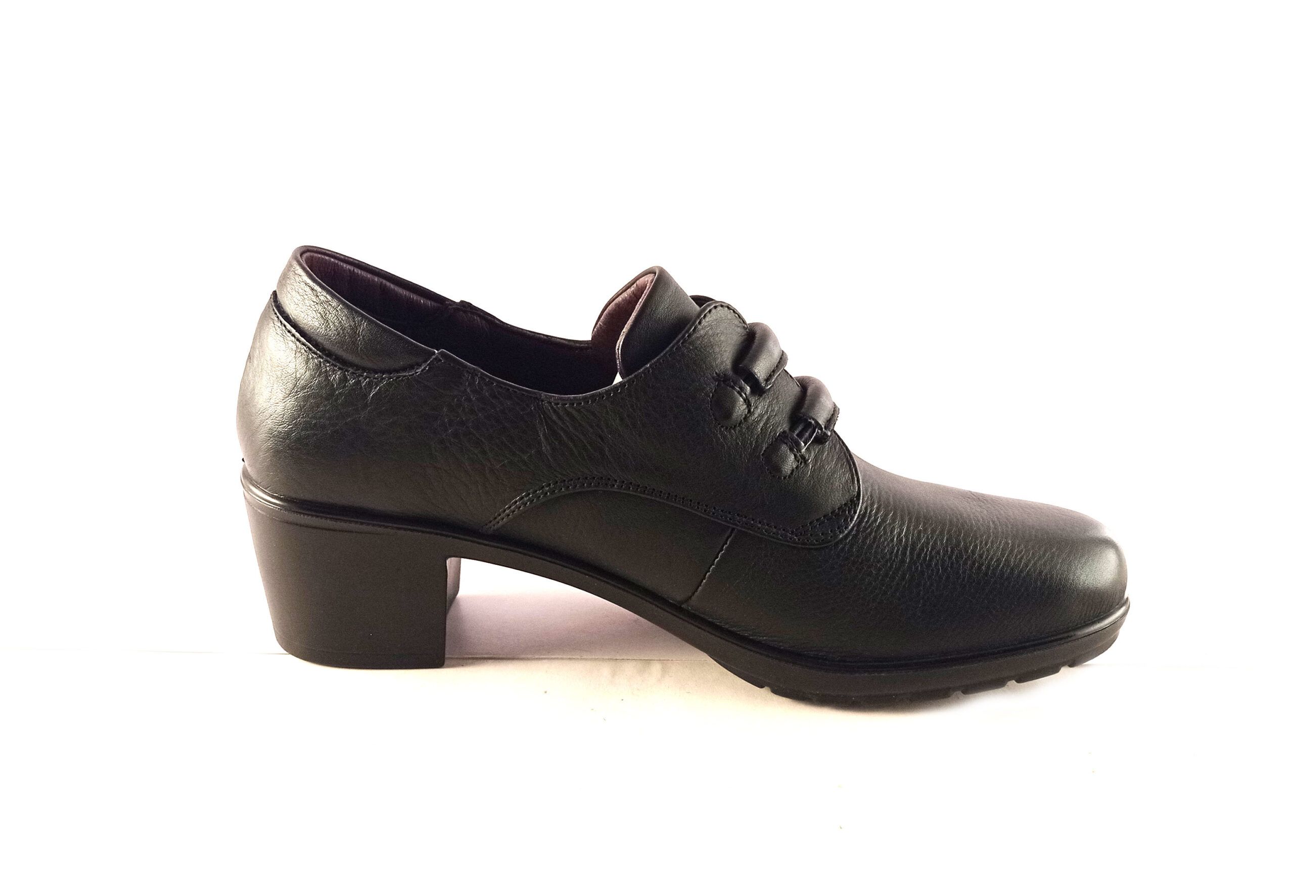 Zapatos para mujer de la colección de Happy Monk modelo Altea 004. Zapatos de tipo sport abotinado con elásticos en las trabillas superiores. Tacón engomado de 5,5 cm y piso engomado antideslizante de 2 cm. Planta acolchada con plantilla extraíble. Piel vacuno natural hidratada y muy flexible. Zapatos muy cómodos y adaptables.