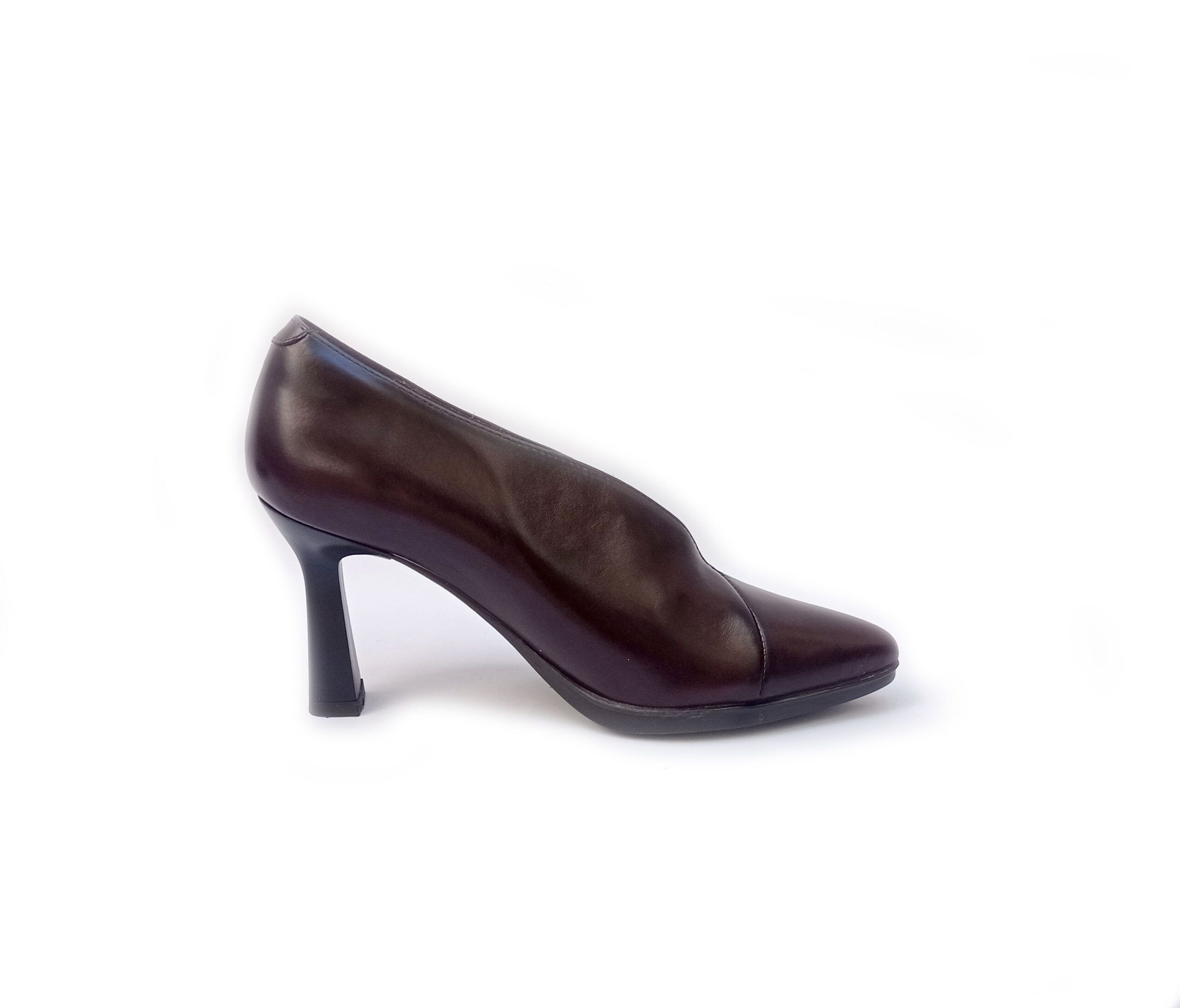 Zapatos de vestir de la colección de Desireé Shoes modelo Syra 27 en color diana testa. Zapatos fabricados en piel vacuno natural hidratada y flexible. Suela engomada antideslizante con tacón de de 8,5 cm. Detalle empeine con corte en V, aporta un toque sofisticado a cualquier look. Suela de goma resistente y flexible.