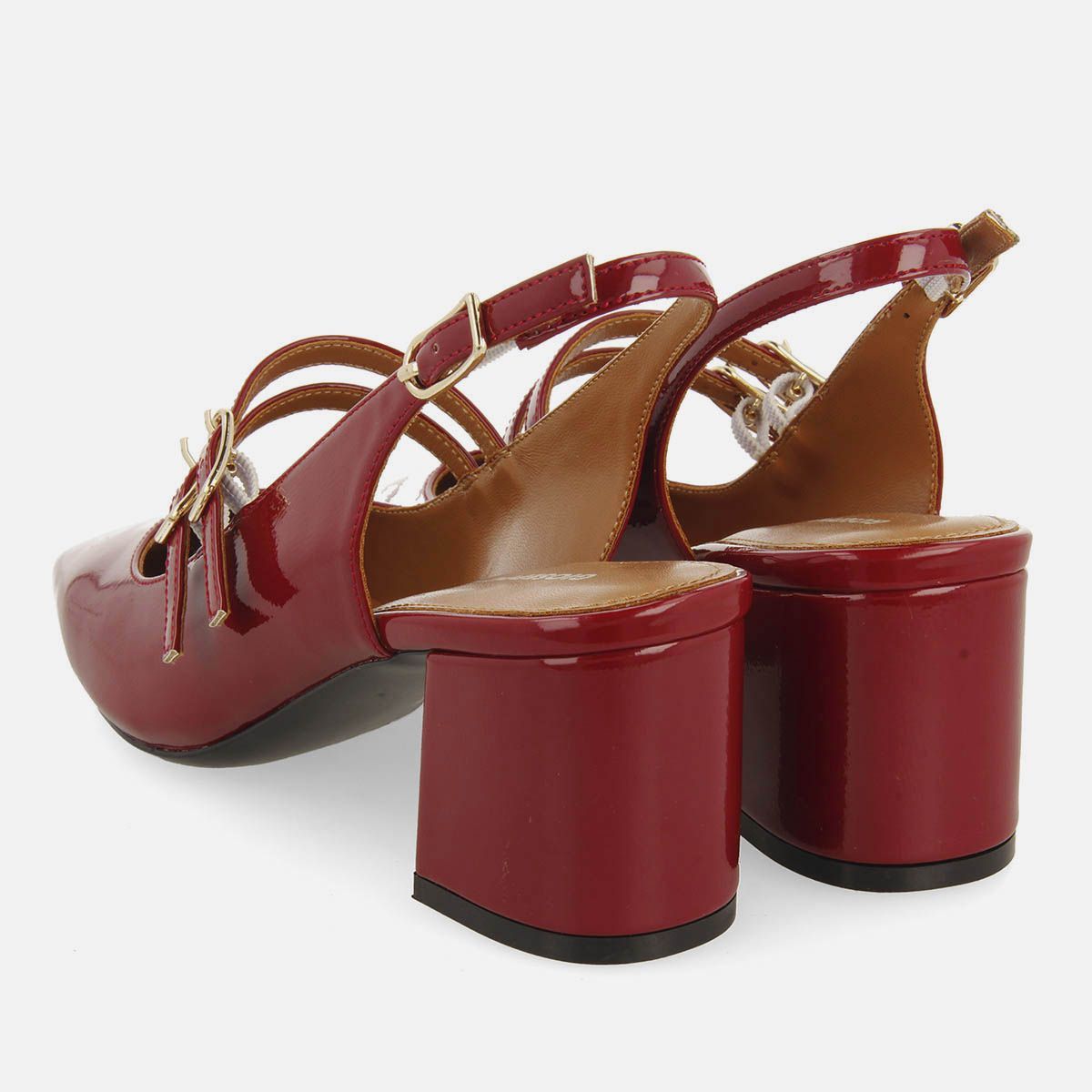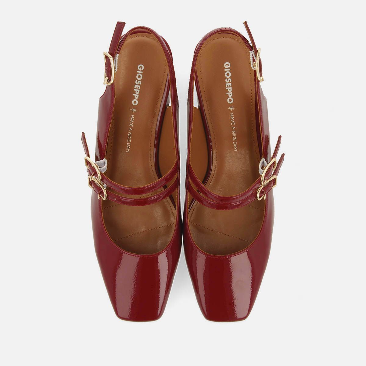 Zapatos de la colección de Gioseppo modelo Sodus en color Burgundy del estilo Mary Jane. Zapatos color burdeos estilo Mary Jane efecto charol con tacón, punta cuadrada y talón abierto. Cuentan con planta de piel transpirable y acolchada, piso de caucho y cierres regulables. Altura del tacón: 5,5cm.