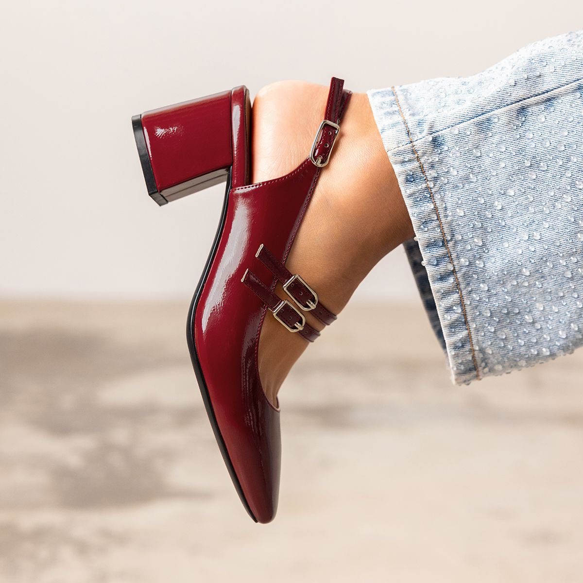 Zapatos destalonados GIOSEPPO Mary Jane charol sodus de la colección otoño/invierno de la marca. El modelo estrella de la temporada. Zapatos color burdeos estilo Mary Jane efecto charol con tacón, punta cuadrada y talón abierto. Cuentan con planta de piel transpirable y acolchada, piso de caucho y cierres regulables. Altura del tacón: 5,5cm. ¡La tendencia clave de este Otoño/Invierno que aportará un aire romántico a tus looks!